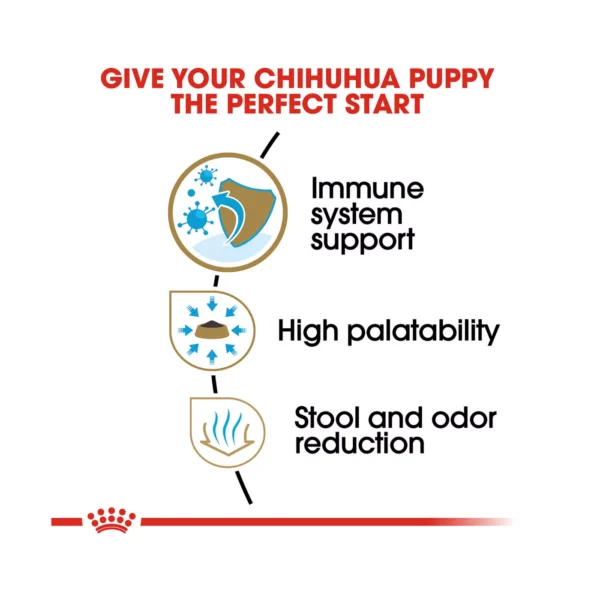 El alimento seco para cachorros Chihuahua de Royal Canin es una nutrición hecha a medida creada exclusivamente para su cachorro chihuahua de raza pura. Ya sea que tenga una cabeza de venado, una cabeza de manzana, un cervatillo o una taza de té, esta dieta exclusiva y específica de la raza está formulada exclusivamente para su cachorro chihuahua, con los nutrientes específicos para ayudarlo a prosperar. Las croquetas personalizadas de tamaño pequeño están especialmente diseñadas para el hocico puntiagudo y la pequeña mandíbula de su chihuahua, lo que le facilita recogerlas y masticarlas. Una mezcla exclusiva de antioxidantes y vitamina E apoya el desarrollo de su sistema inmunológico y mantiene su cuerpo creciendo fuerte. Las proteínas altamente digeribles y el contenido preciso de fibra respaldan una digestión saludable para ayudar a promover una calidad óptima de las heces y reducir los olores desagradables de las heces. Y la combinación del tamaño de las croquetas, aromas y sabores excepcionales seguramente complacerá incluso a los pequeños comensales más exigentes. Una vez que su cachorro chihuahua de raza pequeña tenga más de 8 meses, haga la transición al alimento para perros Royal Canin Chihuahua Adult para obtener una nutrición precisa hasta la edad adulta.
